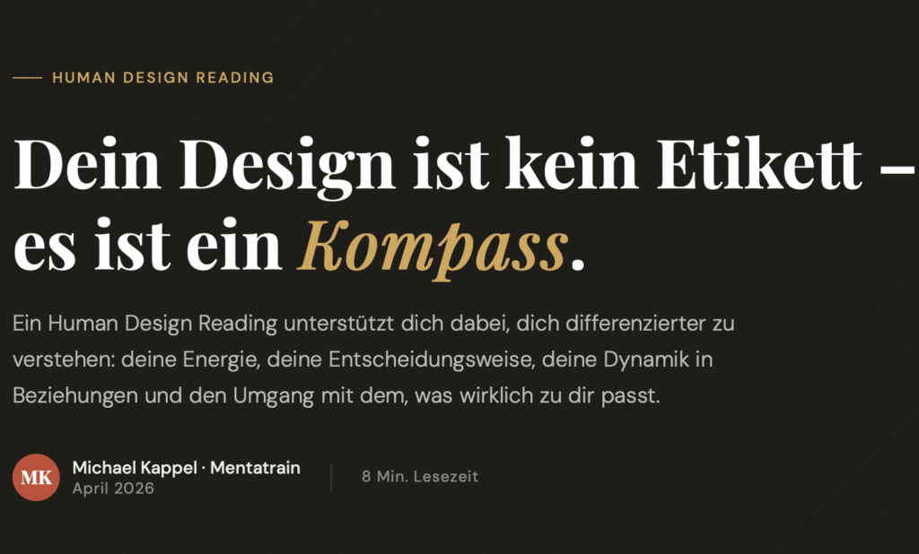 Manchmal spürst du sehr genau, dass etwas nicht stimmig ist – obwohl im Außen scheinbar alles passt. Genau dort setzt ein Human Design Reading an: nicht als Schublade, sondern als Einladung, dich präziser wahrzunehmen.